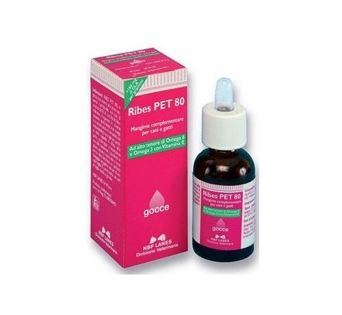 Supporto della funzione dermica in caso di dermatosi ed eccessiva perdita di peli Ribes Pet 80 in gocce, ad elevata concentrazione di acidi grassi essenziali, può essere utile come adiuvante nei casi di aumentato fabbisogno di Ac. g-Linolenico o di Ac. Stearidonico, frequente in diverse situazioni quali: stress, stati allergici o atopici, arrossamenti cutanei con sintomatologia pruriginosa, alterazione della barriera cutanea, eccessiva perdita di pelo, alimentazione con cibi a lunga conservazione.