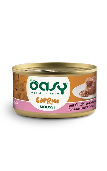 Mousse con salmone dalla soffice e delicata consistenza, ideale per nutrire il tuo gattino fin dai primi mesi. Senza cereali, OGM e soia.
