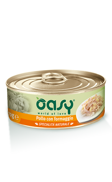 pollo 50%, formaggio 5%, riso 1%, estratto di lievito 0,1%.