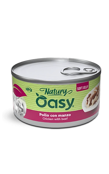 pollo 52%, manzo 4%, riso 1%, brodo di pollo, cloruro di potassio.