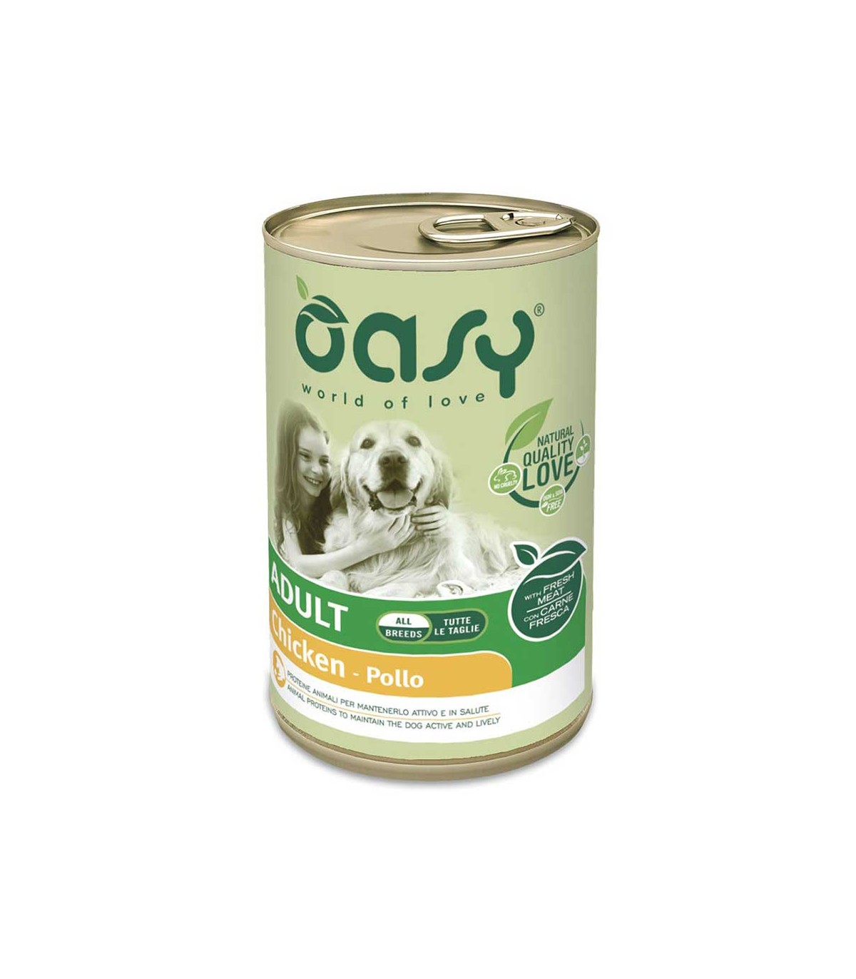 La carne fresca garantisce massima digeribilità, assimilazione dei nutrienti e gusto, per nutrire il cane al meglio tutti i giorni. Oasy Paté asseconda le naturali esigenze del tuo amico a quattro zampe con prodotti formulati senza OGM e soia, senza coloranti e conservanti artificiali.