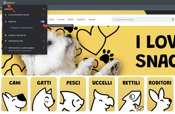 -Clicca sull'icona del lucchetto nella barra degli indirizzi del tuo browser.- -Trova l'opzione "Notifiche" e cambia l'impostazione in "Consenti".-