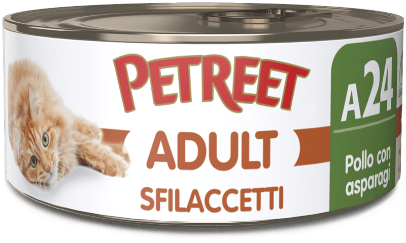 Petto di pollo (60%), Asparagi (13%), Riso (2%), Amido modificato.