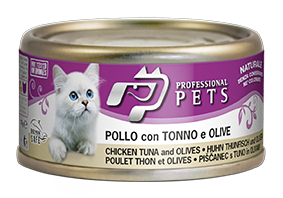Professional Pets con Tonno Pollo e Olivei 70 Gr. è un Alimento naturale preparato con ingredienti freschi selezionati e di qualità nel proprio brodo di cottura, senza l’aggiunta di conservanti, coloranti o additivi chimici. Il pesce contiene delle proteine molto nobili e digeribili ed è ricco naturalmente di acidi grassi Omega3.