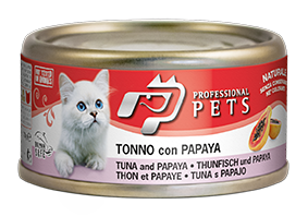 COMPOSIZIONE: tonno 69%, acqua di cottura 24%, papaya 5%, riso 2%.