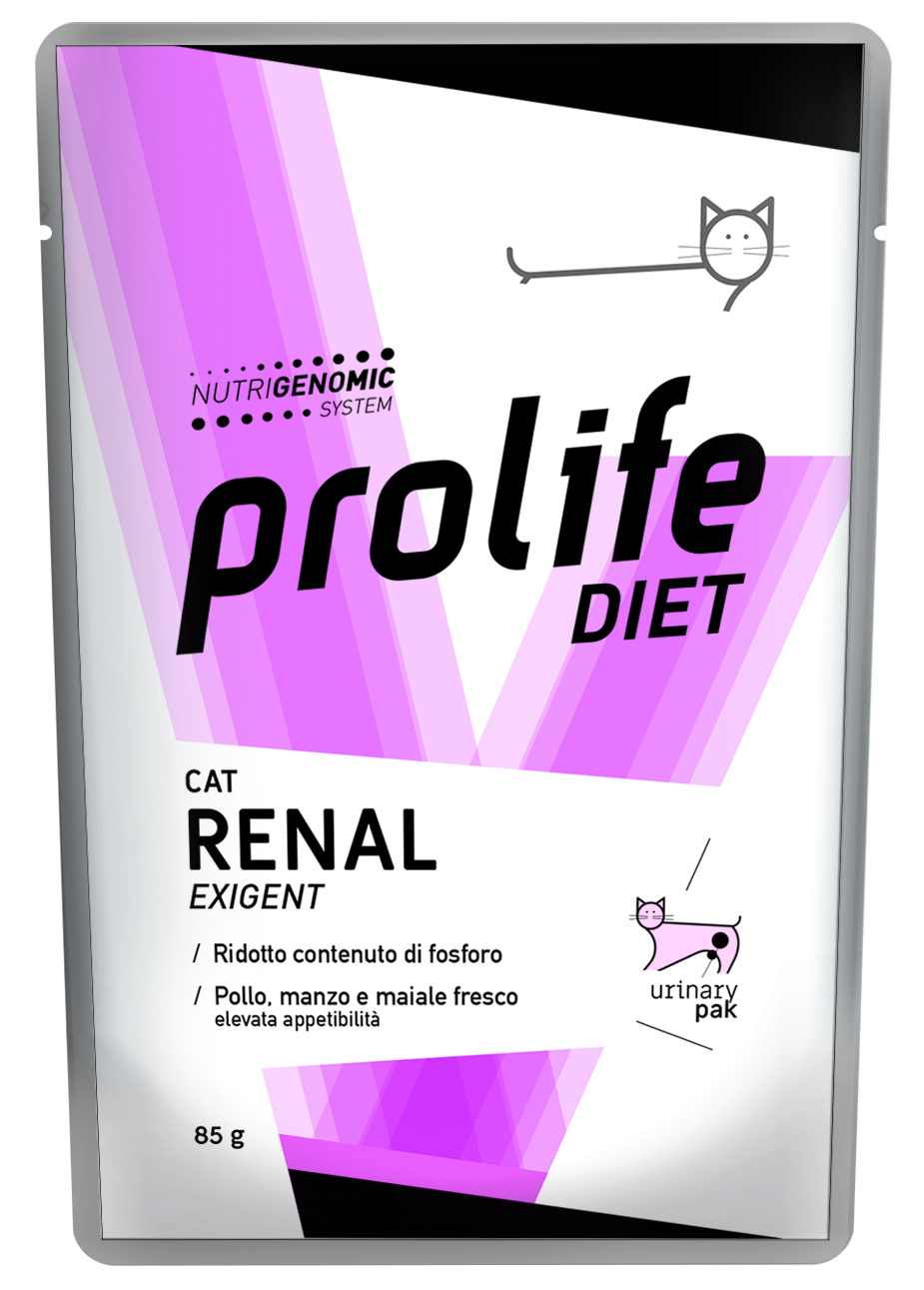 Alimento completo dietetico per il gatto formulato per il supporto alla funzione renale in caso di insufficienza renale cronica o temporanea.