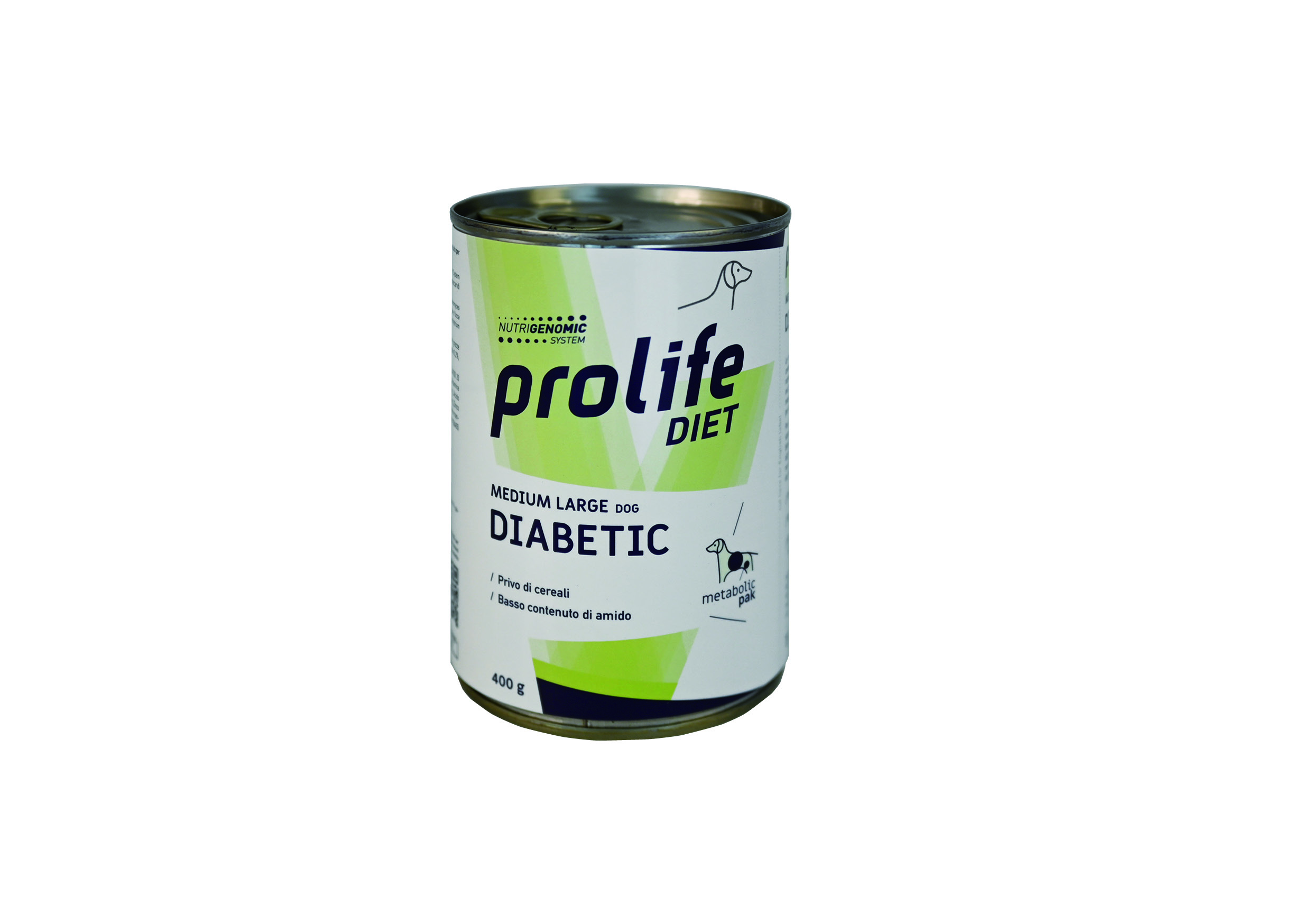 Alimento completo dietetico per il cane di taglia media e grande formulato per il controllo dell’apporto di glucosio (diabete mellito).