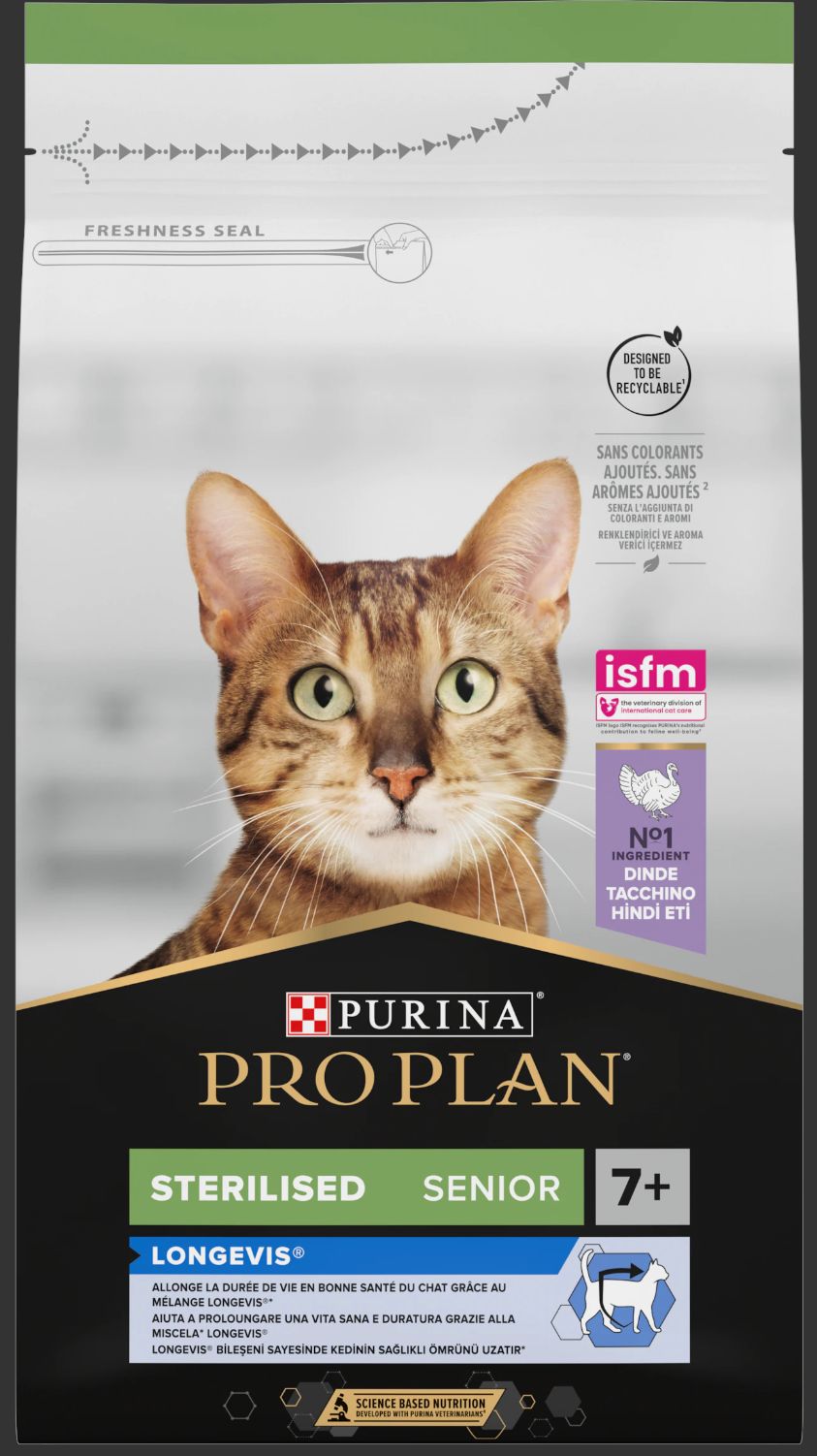 Pro Plan Sterilised 7+ con Tacchino è un cibo secco completo a base di tacchino per gatti sterilizzati con più di 7 anni di età. Grazie all'esclusiva formula Longevis, una miscela esclusiva di sostanze nutritive che integra antiossidanti, acidi grassi Omega-3 e Omega-6 oltre che un prebiotico, scientificamente provato per prolungare la durata della vita sana e per migliorare la qualità, in gatti con più di 7 anni. questi croccantini per gatti sono in grado di garantire una vita serena ai gatti con più di 7 anni di età, migliorandone la qualità.