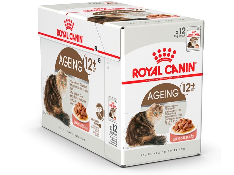 Royal Canin Ageing +12 in Salsa: cibo umido per gatti oltre i 12 anni di età. Speciale formula PNO (Profilo-Nutrizionale-Ottimale), favorisce la funzione renale e la salute delle articolazioni.