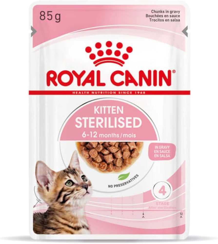 Per soddisfare le preferenze di ogni gattino, ROYAL CANIN® Kitten Sterilised è disponibile anche nell' attraente formato in gelatina o cibo secco, con croccanti e appetitose crocchette.