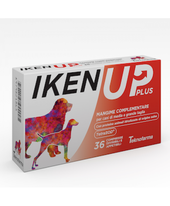 Teknofarma iken up PLUS 16 compresse o 36 compresee è un mangime complementare. Aminoacidi ramificati, Aminoacidi limitanti, Carnitina, Vitamine, Oligoelementi, Octacosanolo.