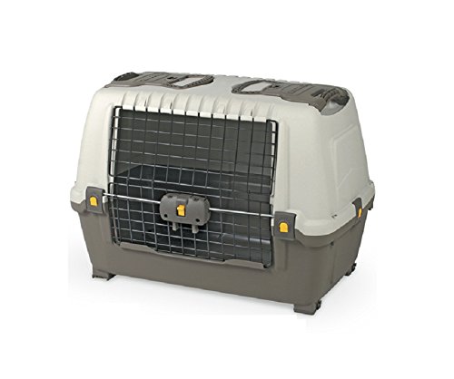 Comodo e robusto trasportino in plastica,ideale per portare con se il vostro amico a 4 zampe.Composto da due gusci uniti tramite appositi incastri e viti di fissaggio,dispone di un ampio ed agevole portello frontale in metallo che si apre a soffietto,in questo modo il vostro cane dispone di un ampio e confortevole spazio per l' ingresso.Dotato di ergonomiche maniglie laterali per agevolare il carico e lo scarico dall' auto,dispone inoltre di una griglia di fondo antiscivolo dotata di canali di scolo per agevolarne la pulizia che pu? essere rimossa per ogni esigenza. Disponibile nei colori Grigio/Nero.