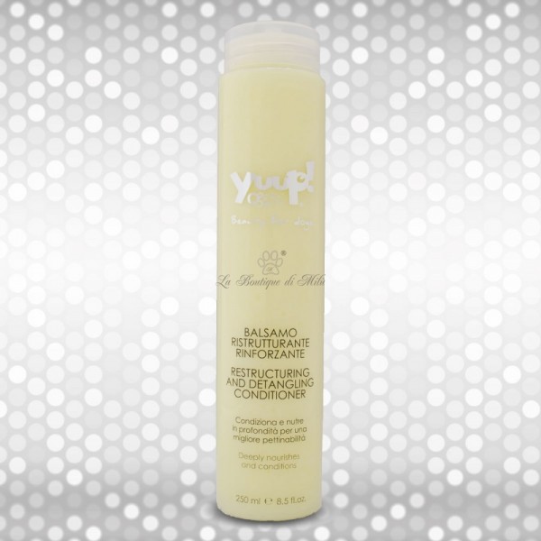Balsamo volumizzante e ristrutturante ideale per tutti i tipi di manto e specialmente per i più rovinati, sfibrati e che necessitano di pettinabilità. Arricchito con proteine del Riso e fitoceramidi estratte dai semi di Girasole per riparare e condizionare il pelo e con estratti addolcenti di Bamboo e fiori di Loto.